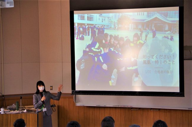 【職員と生徒からの説明の様子】