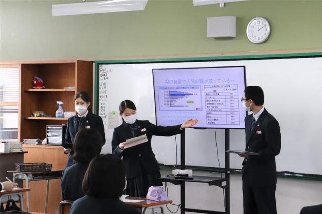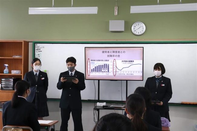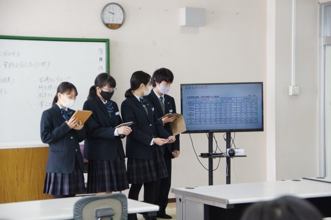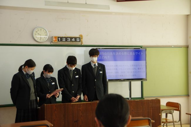 普通科「総合的な探究の時間」において、文理コース・特進コースⅠ類ではグループ別のプレゼンテーションを行いました。