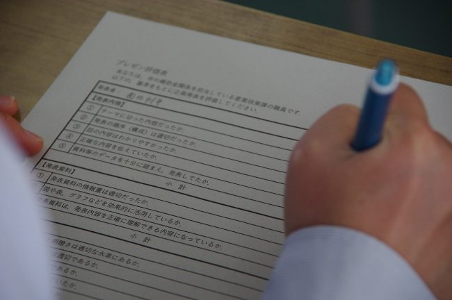 各学年、最後には生徒自身でプレゼンを評価し、今後の改善につなげました。