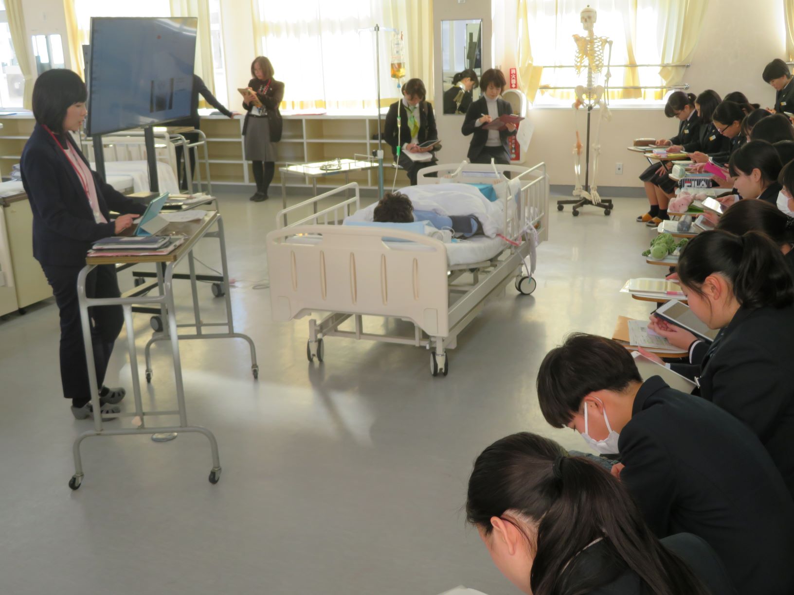 臨時休業に伴い、本校看護学科や普通科では、普段の授業でも活用しているタブレット端末を使い、生徒たちの自宅学習支援を行います。先日卒業した看護学科基礎課程3年生は、例年だと専門課程入学準備セミナー期間ですが、中止のため学習支援アプリを使い問題配信などによる課題に取り組みます。