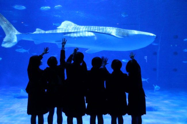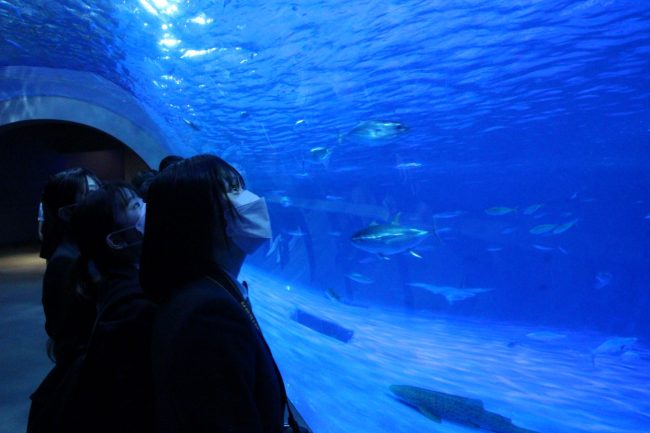 2・3年生も入学してから初めての遠足でした。鹿児島水族館に初めて行く生徒もいました。