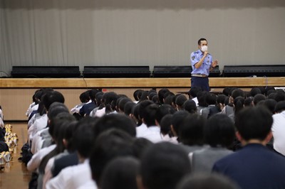 交通安全教室では、南さつま警察署の堀様から交通事故の件数やどのような事故が多いのか、事故を起こさない・巻き込まれないために必要なことは何か、を説明していただきました。