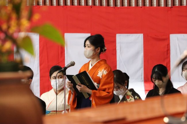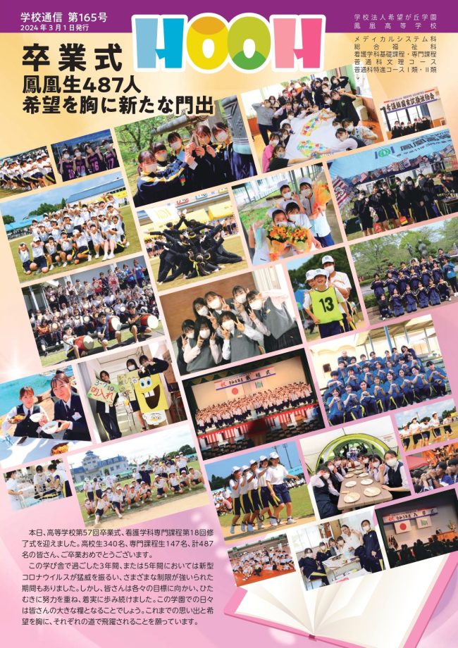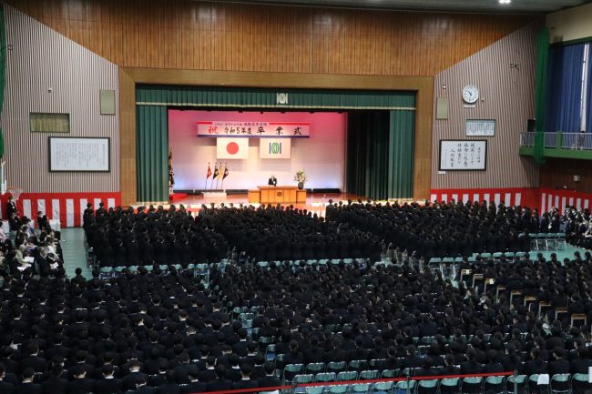 今年度はコロナ禍前の式次第に戻し、高校生340名・専門課程生147名、計487名の門出を祝うことができました。