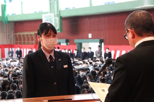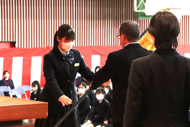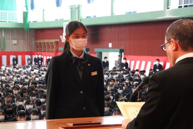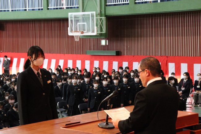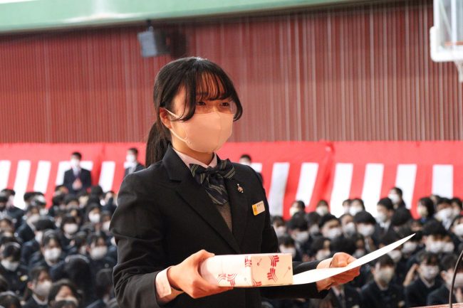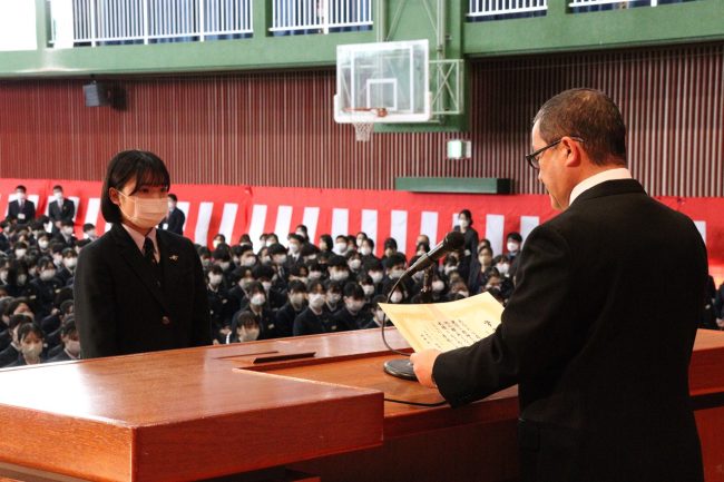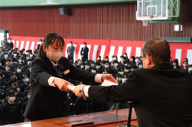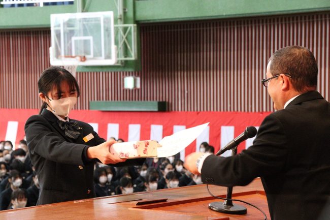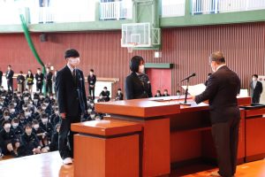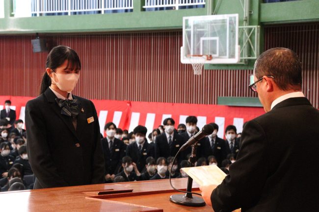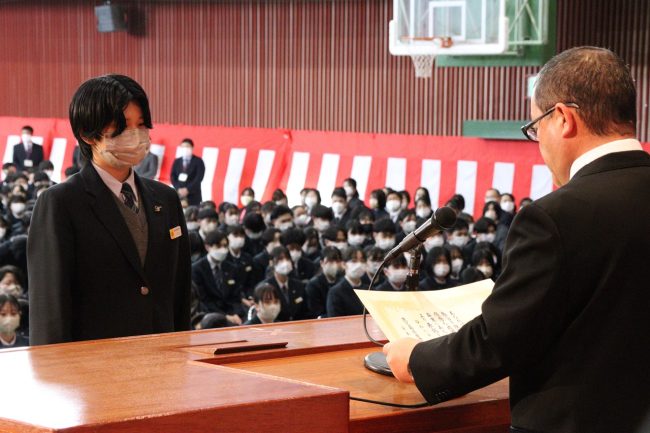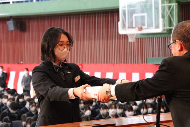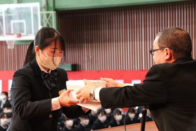 「令和5年度 表彰式」では、卒業生のうち、学業その他に精を出した優秀な生徒に賞が与えられました。