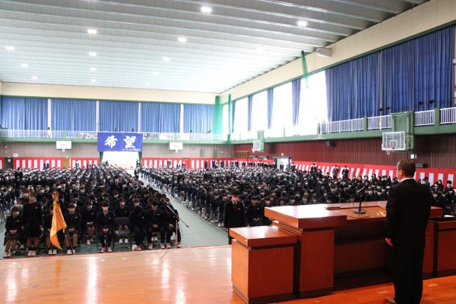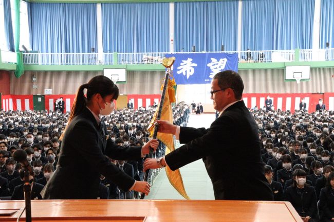 本日(2月28日)は午前に卒業式の予行、午後からは「令和5年度 表彰式」及び学年旗返還が行われました。