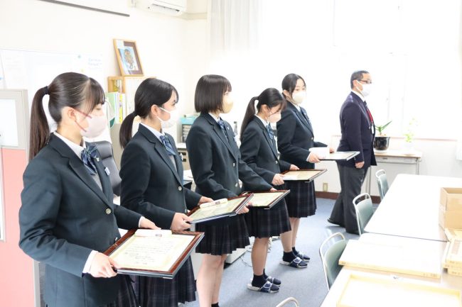 今回受賞したのはメディカルシステム科2年生2名、普通科文理コース2年生3名、普通科特進コースⅡ類2年生1名。
