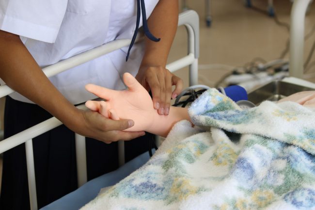 実際に触ると本物のような脈の振動を感じることができ、聴診器では呼吸音まで聞くことができます。