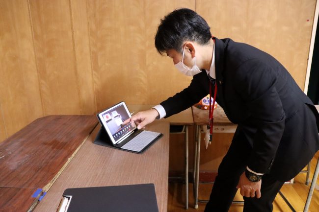 1年生は初めての全体朝礼でした。2・3年生はクラスからリモート参加をしています。