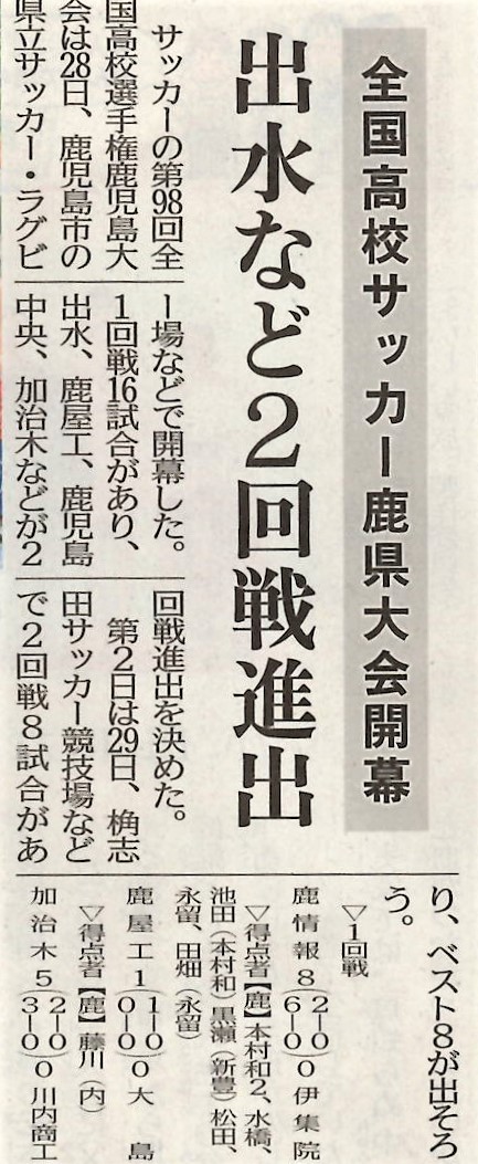 全国高校サッカー鹿児島県大会&南日本新聞掲載記事