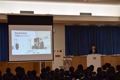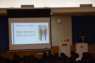 本日(4月15日)は、新入生を対象とした制服セミナーを1限目に行いました。