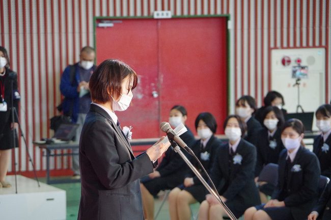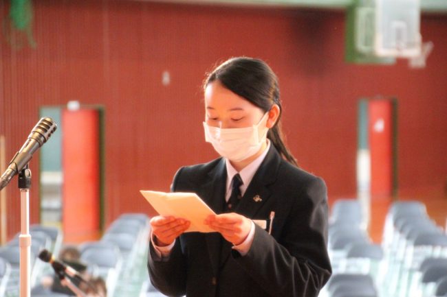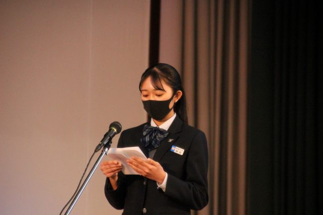 式の最後には、在校生を代表し﨑原 乙葉さん(看護学科基礎課程2年)が卒業生へ贈る言葉を述べました。