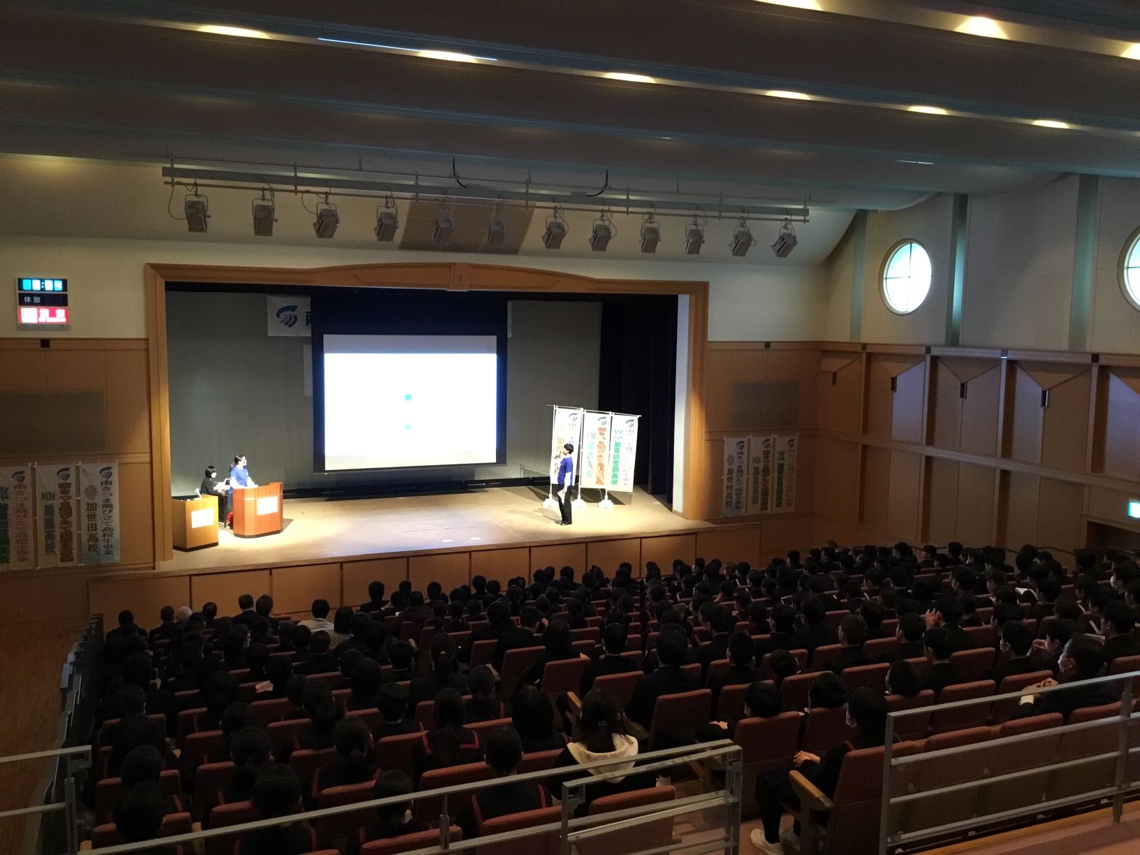 去る1/11(土)、南さつま市の<ふれあいかせだ いにしえホール>で「令和元年度 南さつま飛びたて高校生事業報告会」が開かれ、本校4事業のうち「看護師のたまごによる健康授業」の事例発表を行いました。今年度、看護学科が取り組むこの事業は、文化祭等の学校行事、地域イベントを活用し、地域住民の健康増進活動を行うものです。他事業も完成間近になっており、そのお披露目をご紹介できる日も近いのではないでしょうか。