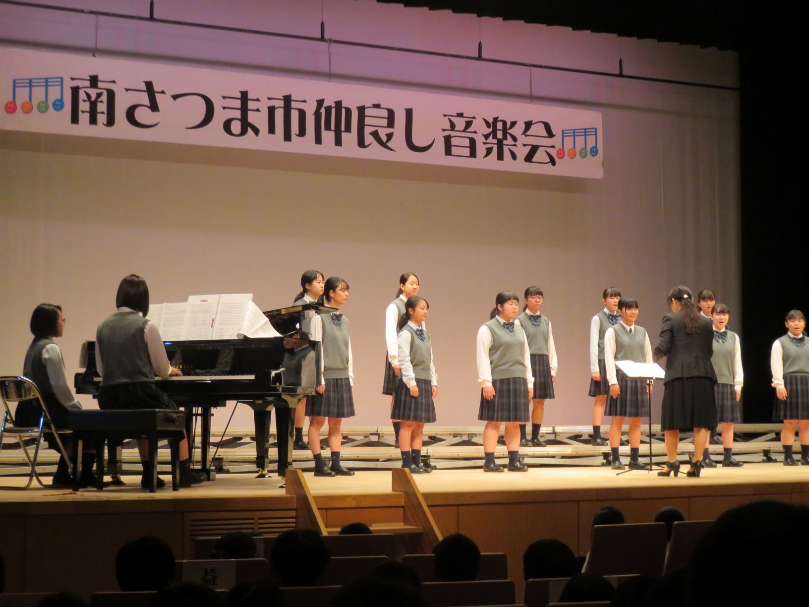各学校や地域の文化行事が目白押しのこの時期。本日は、「南さつま市仲良し音楽会」が大浦ふれあいセンター大ホールで開催され、本校合唱部が出演しました。美しい歌声を、先日の本校文化祭でも大勢の前で披露しているだけあって、堂々としたステージ発表だったようです。