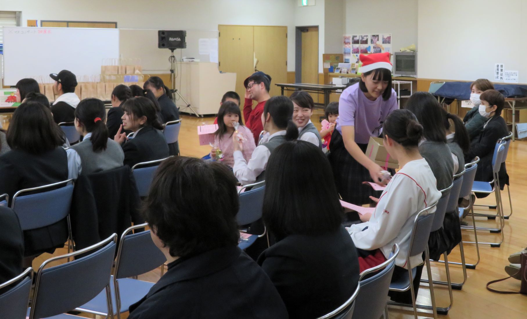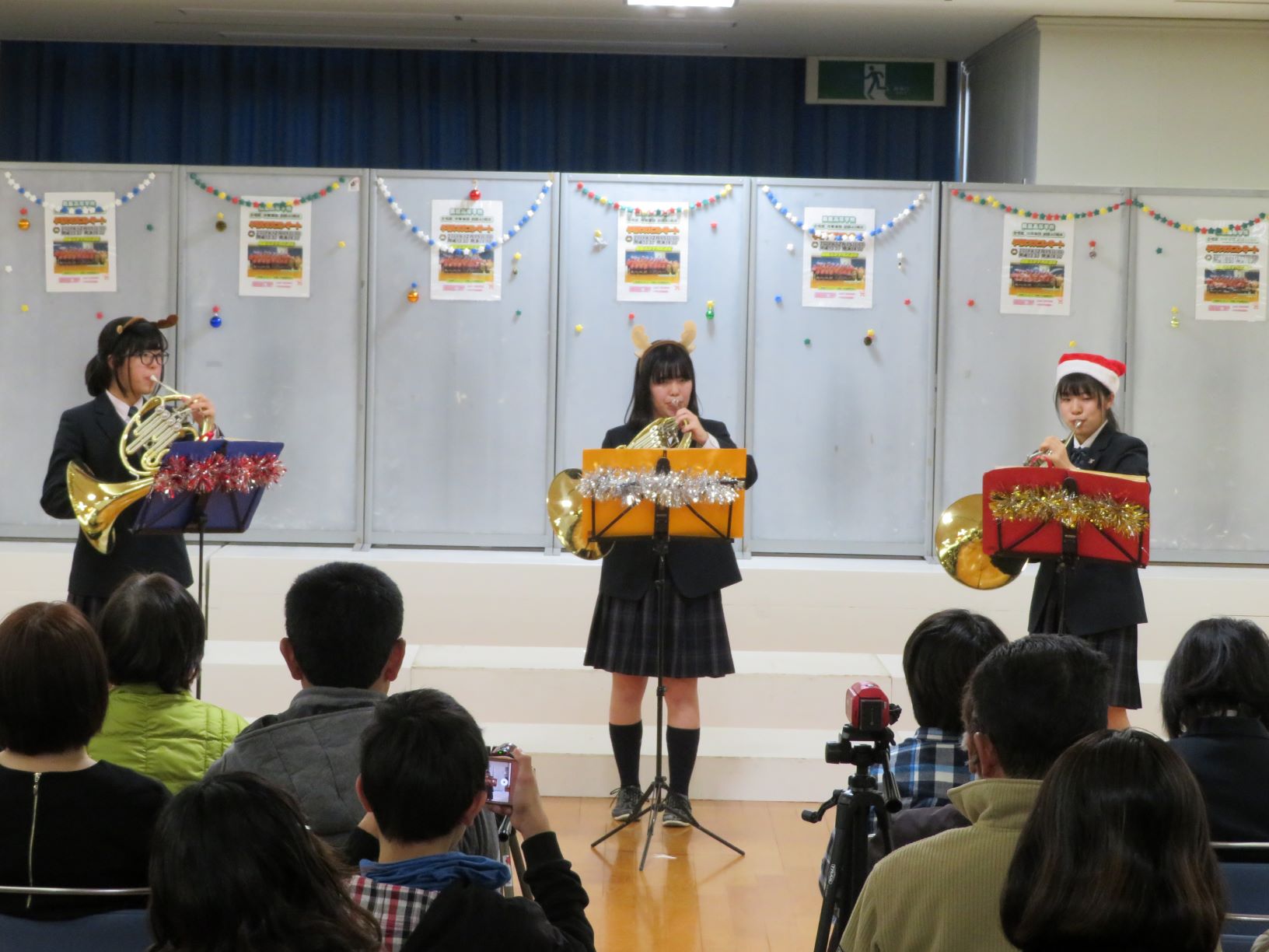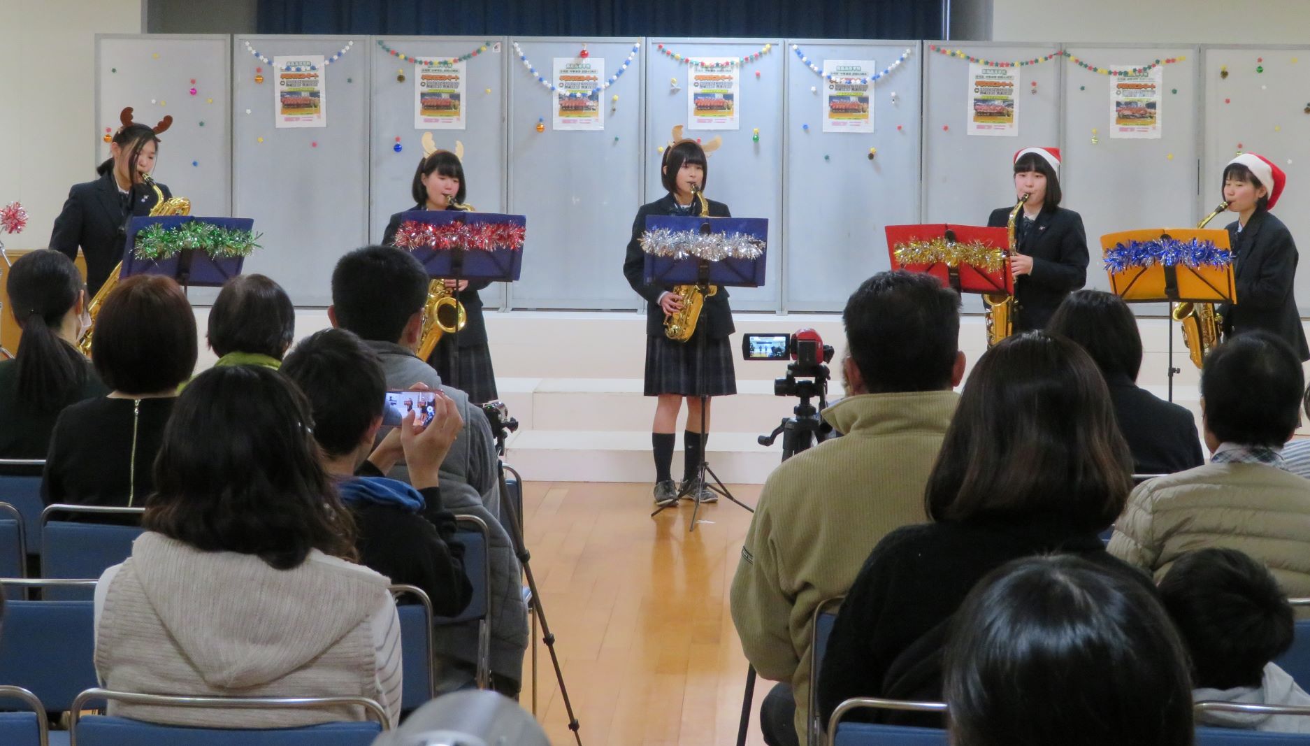コンサートは12/15(日)14時から本校武道館で開催されました。会場は保護者の方々、家族、友人などで満席になり、全員にプレゼント配布、さらにお楽しみ抽選会もあり大盛況のうちに閉幕しました。ご来場いただいた方々には感謝申し上げます。