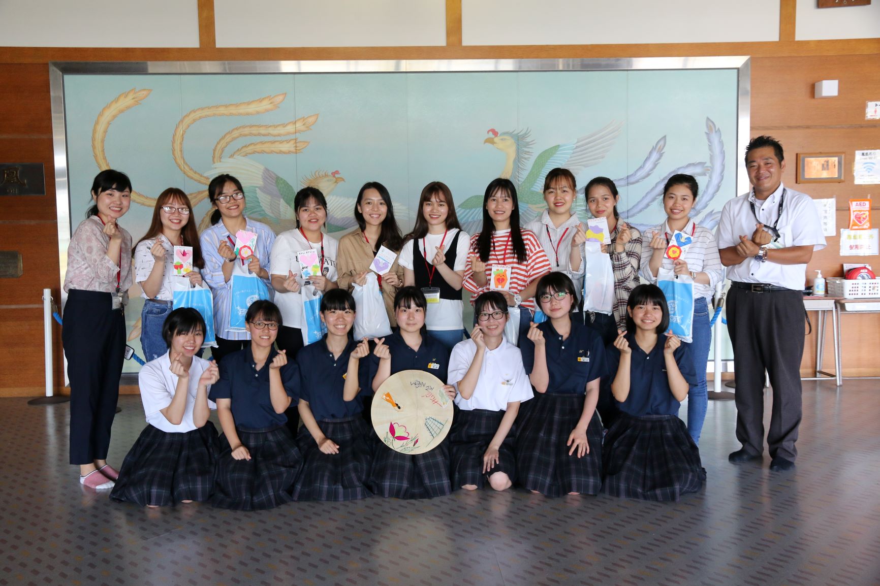 本校の武道館で、この時期らしい国際交流が行われました。今年度、普通科文理コース・特進Ⅰ類2年生が取り組んでいるプロジェクトの1つ「在住外国人支援」。本日、南さつま市加世田在住のベトナムの方9名との「文化交流会」を行いました。 今回の交流会の目的は、「日本とベトナムの文化を互いに学び合い、体験する」でした。 本校の生徒は、夏の日本の行事である「七夕」と「そうめん流し」を説明しました。 短冊を実際に書いたり、そうめんを一緒に食べたりといった体験も行いました。 また、ベトナムの方にご同行いただいた石間伏様より、 「ベトナムの国の事情」や「なぜ、日本に来て働いているのか」などのお話をしていただきました。 普段なかなかお聞きすることのない、ベトナムについてや、技能実習生について学ばせていただくことができ、貴重な機会でした。 その後、手作りのベトナムのお菓子やコーヒーをいただきました。 生徒もベトナムの方も互いの国や文化について質問をしたり、趣味について話したり、 本当に楽しそうに交流している姿が印象的でした。側面的にサポートする普通科担任で英語科の濵田夏帆教諭は「 実際に同じ街に住みながら、交流することのなかった高校生と在住外国人の方が、互いの文化について知ろうとする交流の場を持てたことは、このプロジェクトの目的達成の一つであり、これまで準備を頑張った生徒もすがすがしく達成感に満ちた顔をしていました」と振り返りました。また 「早く次の交流会を開きたい」との声も双方から多くあがっていたようでした。