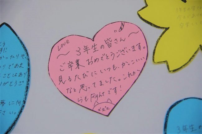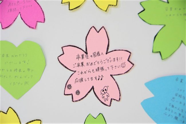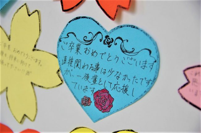 在校生は、先輩達から学んだこと、お世話になったこと、感謝していること、様々な想いをメッセージカードに込めました。