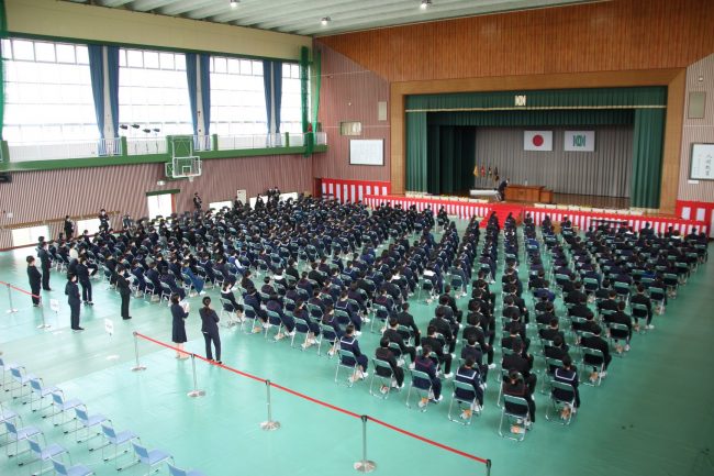 本日、中学校の制服を身にまとい、緊張した面持ちで新入生が登校しました。