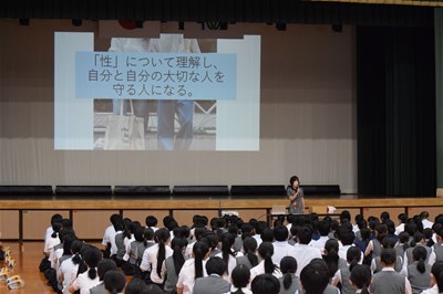 本日(6月17日)体育館で高校1年生を対象とした性教育講話を行いました。