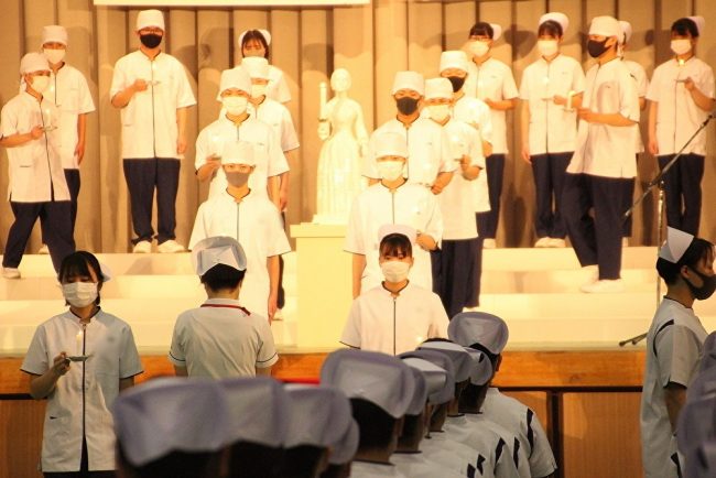 新型コロナウイルス感染症の影響で式次第の変更や入場制限を強いられる戴帽式となりますが、生徒達は戴帽式実行委員を中心によく頑張っています。