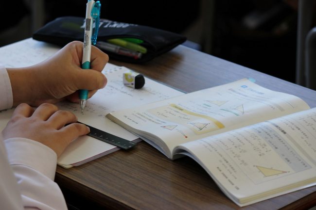 生徒たちは今まで学習した定理をうまく利用しながら三角形の面積を求めることが出来ていました。