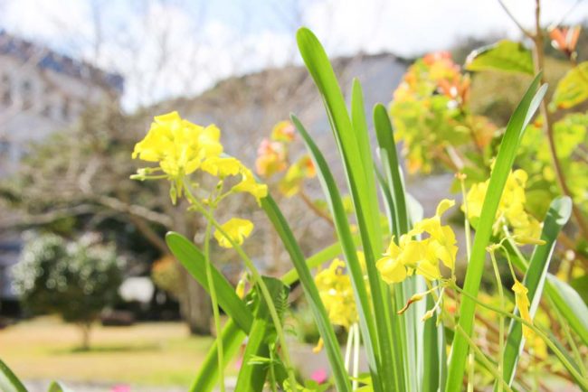 グラウンドの方を見ると、梅や桜の花が咲き始め、鳳凰の草花たちも春の訪れを教えてくれています。