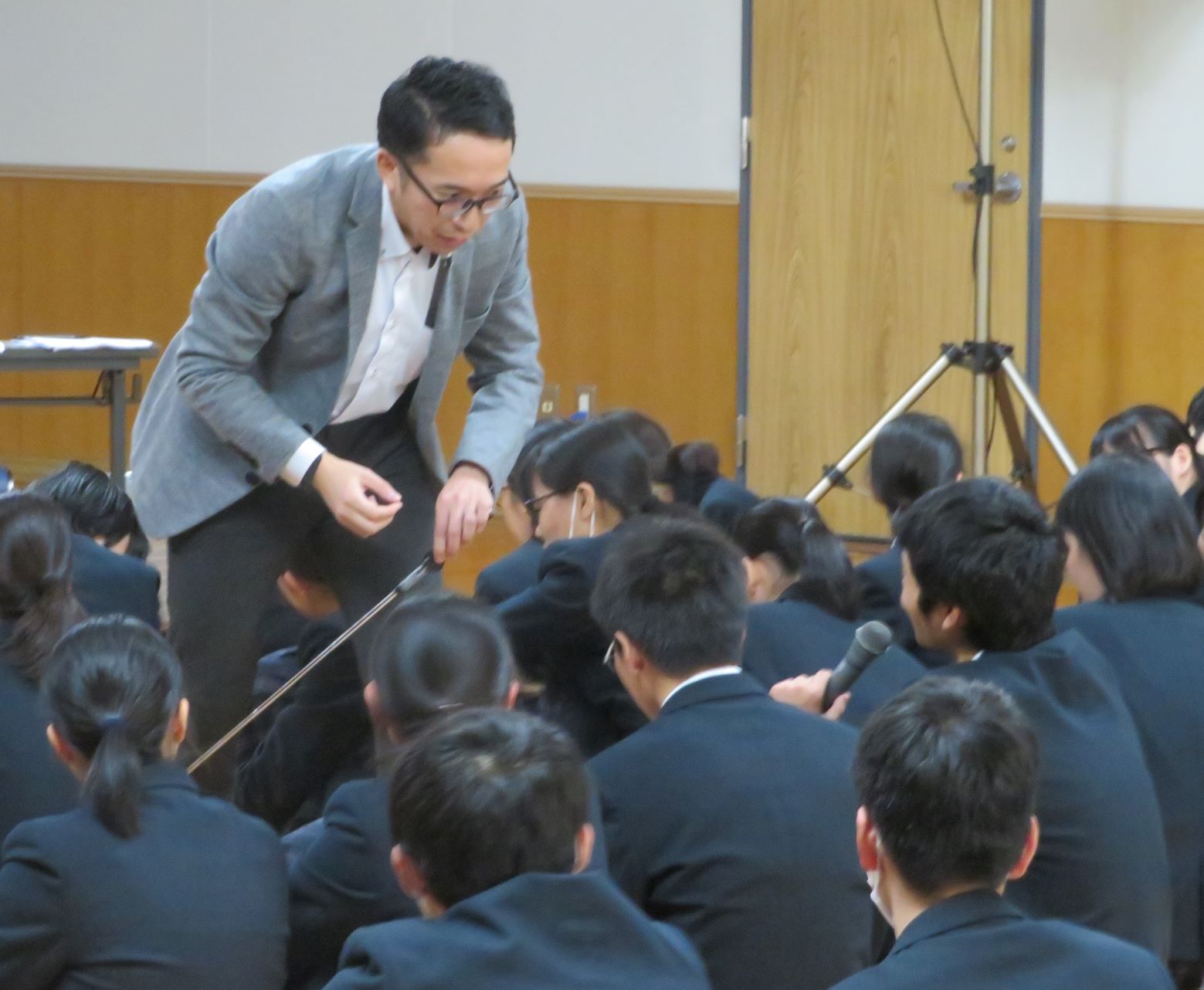 本日13時から、本校武道館1階多目的ホールで普通科1、2年生を対象に講演会が実施されました。講師は、鹿児島市のきいれ浜田クリニック院長 濵田 努先生。演題は「医師から子供たちへ伝える『いのちの授業』」、濵田先生は呼吸器内科・認知症・在宅医療・緩和ケアがご専門で、院長職でありながら家庭医としてもご活躍されています。人の「苦しみ」について、動画やワークシートを使用し考えてもらう講義形式で、生徒も積極的な発言をしていました。文理コース1年男子生徒は「日頃、身近にいる親、兄弟や部活動の仲間を通じて、ひとを考えるように心がけたい」と話してくれました。