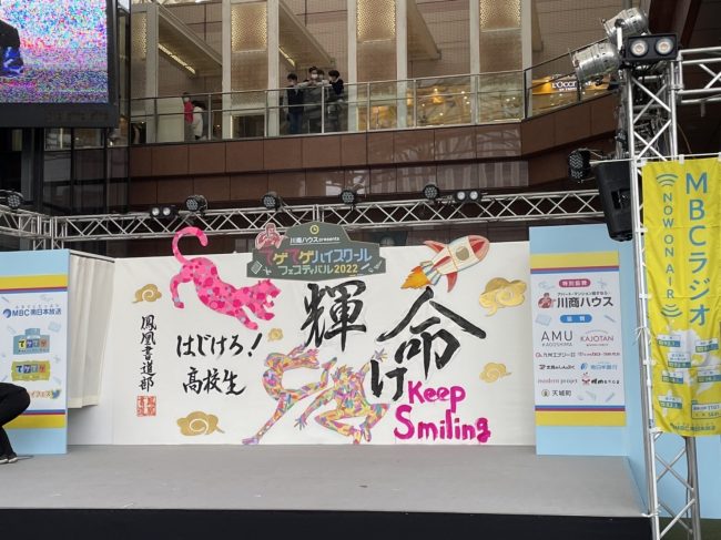 3月20日にアミュプラザ鹿児島で行われた「てげてげハイスクールフェスティバル2022」に本校の書道部が出場し、オープニングを飾りました。
