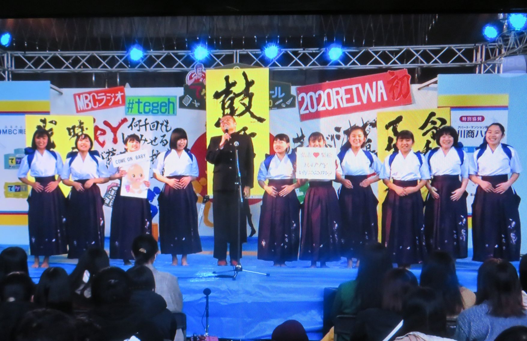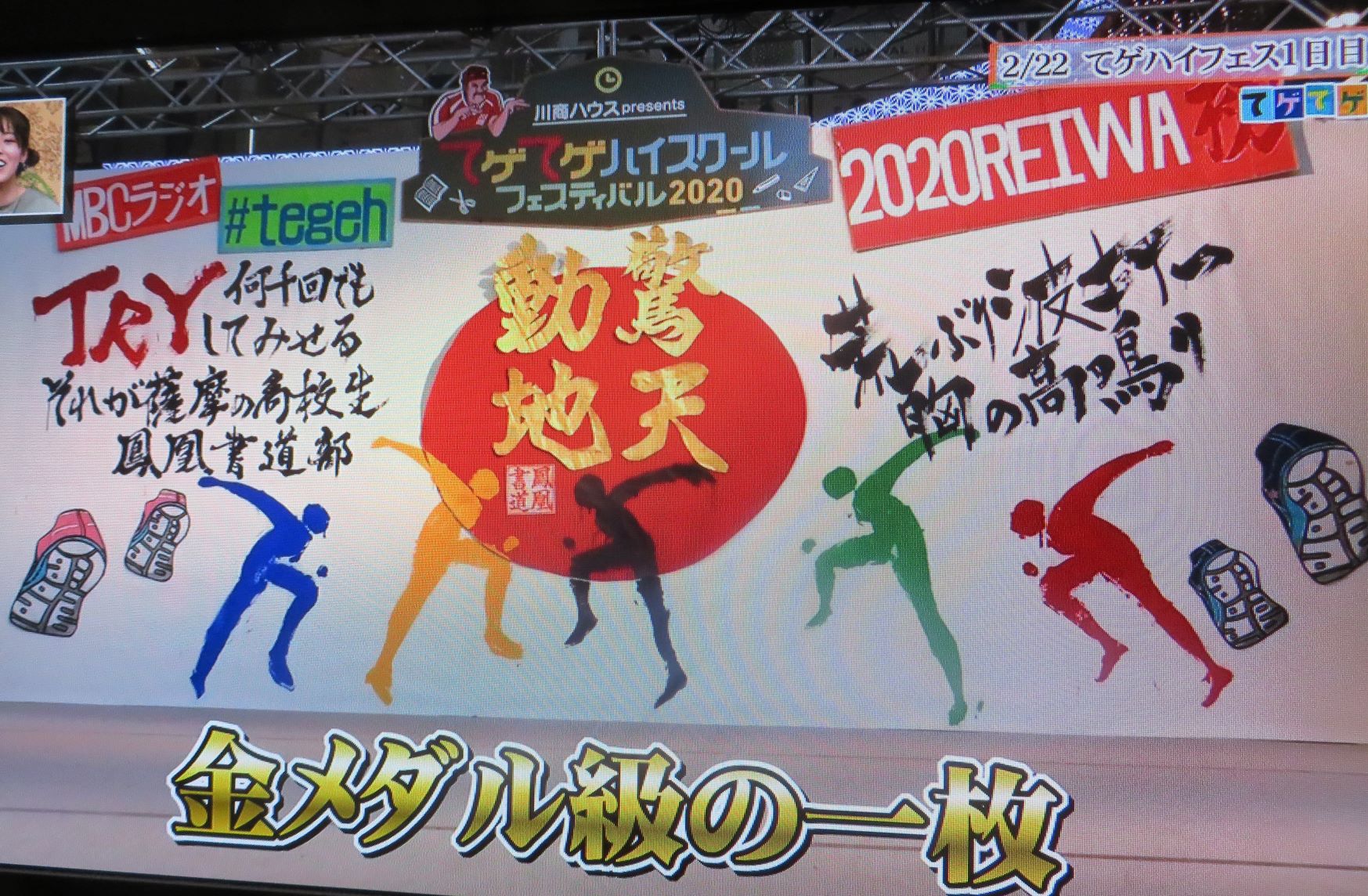 先日お知らせしました本校書道部が、去る2/22・23日にアミュプラザ鹿児島AMU広場で開催された「てげてげハイスクールフェスティバル2020」初日、県内出場高校52校のトップバッターとして披露した「書道パフォーマンス」の模様がテレビ放映されました。