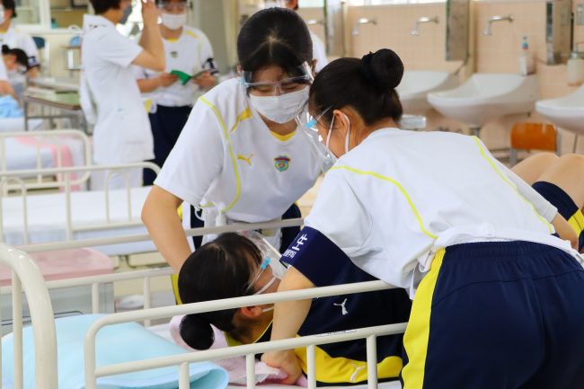 患者さん役は生徒が交代で行います。