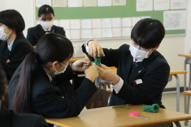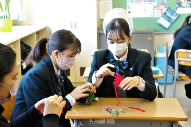 本日は、総合福祉科3年生のレクチャーのもと、総合福祉科1年生とメディカルシステム科2年生がオーナメント作成を行っておりました。