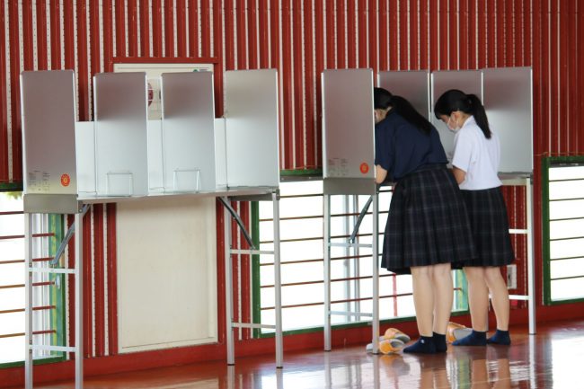 演説が終わると体育館、武道館にわかれて投票がおこなわれます。