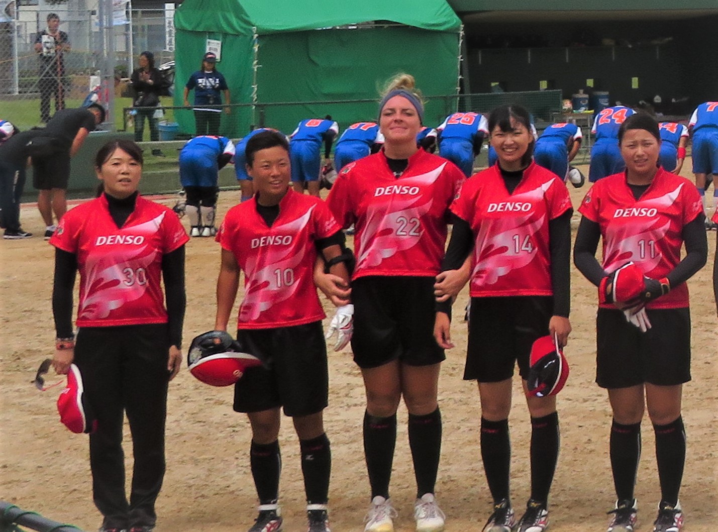 本日、南九州市知覧平和公園多目的球場などで開幕した全日本総合女子ソフトボール選手権大会。今大会は来年のかごしま国体のリハーサル大会でもあります。その地元開催に実業団チーム「デンソーブライトペガサス」に卒業生の田中 真紀子さん(平成22年普通科特Ⅰ卒)がチームキャプテンとして活躍しています。1回戦日本体育大学との対戦では、4番指名打者で出場しました。田中さんの活躍もあり8回タイブレークの末、2対1のサヨナラ勝ちで明日の2回戦へ進出しました。応援よろしくお願いします。