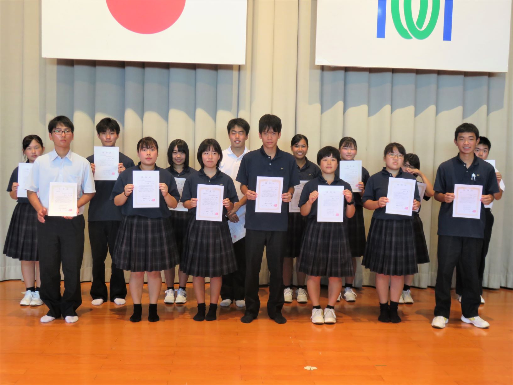 本日の全体朝礼で、先日行われた生徒会執行委員改選により決まった新委員の任命式(下の写真左)がおこなわれ、任命状が手渡されました。*新委員は下記の通りです。