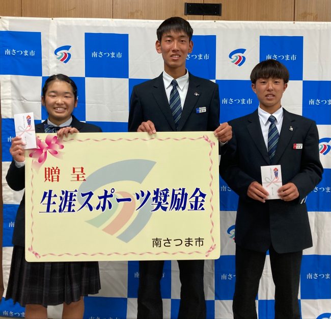 3/16には、校長先生から激励のお言葉をいただき、南さつま市からは、生涯スポーツ奨励金を受贈しました。