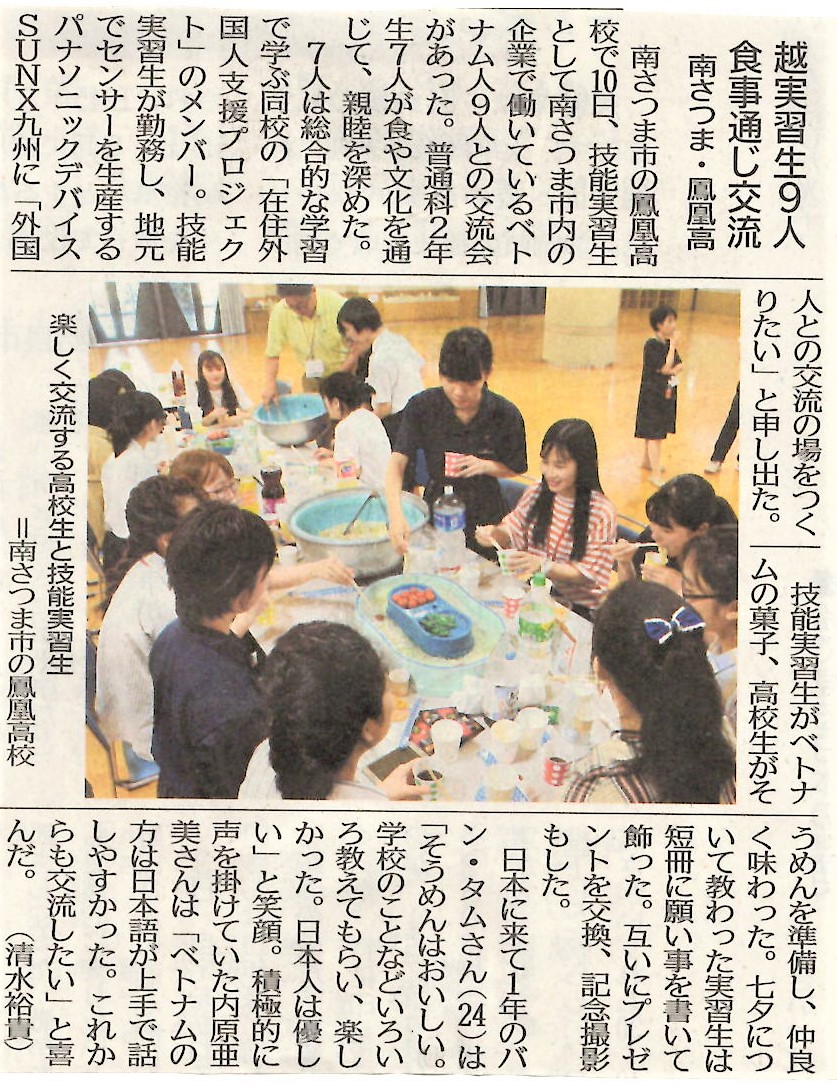去る8/10(土)に本校武道館で行われた国際交流。その話題が南日本新聞に掲載されました。