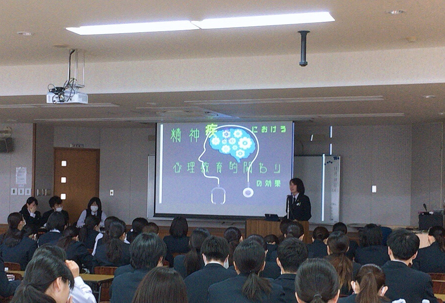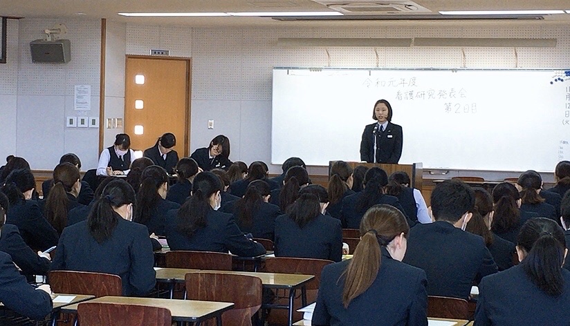 看護学科専門課程2年生は、看護師国家試験合格に向け199名一丸となって夜間学習などに励んでいますが、以下の取り組みも5年間の集大成といえるのではないでしょうか。病院などでの臨地実習で受け持った事例を用いて、1人1例「ケース発表」を6日間かけて実施している取り組みです。5年間の成長の証といえる発表となっているようです。