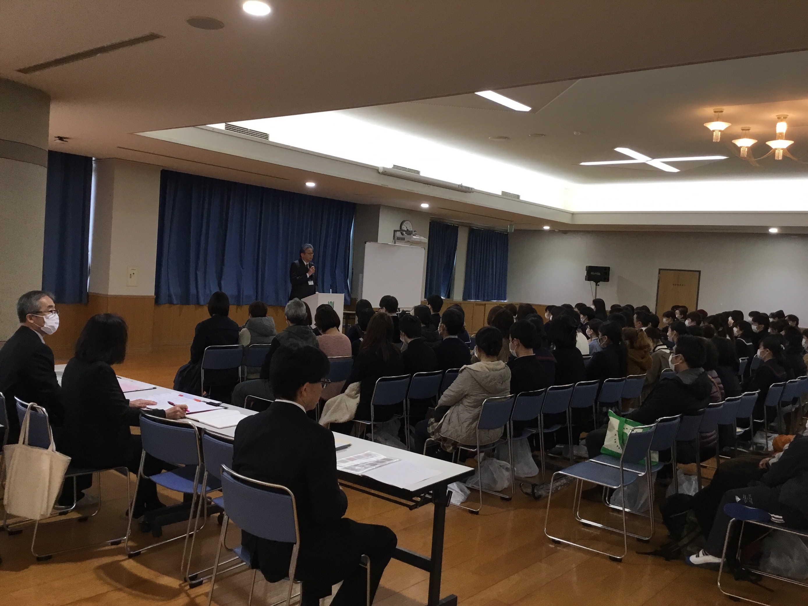看護学科入学説明会 2020年2月22日 最終更新日時 : 2020年2月22日 hooh ★看護学科入学説明会★ 本日10時から、本校武道館などで看護学科のみの「入学説明会」を実施しました。県内外より多くの入学予定者、保護者の方々が出席され、校長挨拶や各部署からの説明、諸手続きなど滞りなく進行することができました。 皆さん、足元の悪い中、本当にありがとうございました。 ▲会場ではマスク提供や手指消毒で最善を尽くしました。 ▲来年度から導入される電子黒板の紹介もさせていただきました。(左写真) ★2019年度 行事予定★ ♦2019年度3学期 イメージコマーシャル