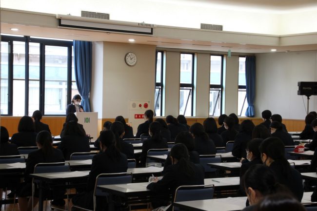 はじめに校長先生から「勉強もさることながら、身なりはきちんと整っているか。意識を小さいところから変えていけば見違えるように成長していく。勉強も小さいことを積み重ねていけば、必ず合格へ近づく。この2月から良いスタートを切ってほしい。」と激励がありました。
