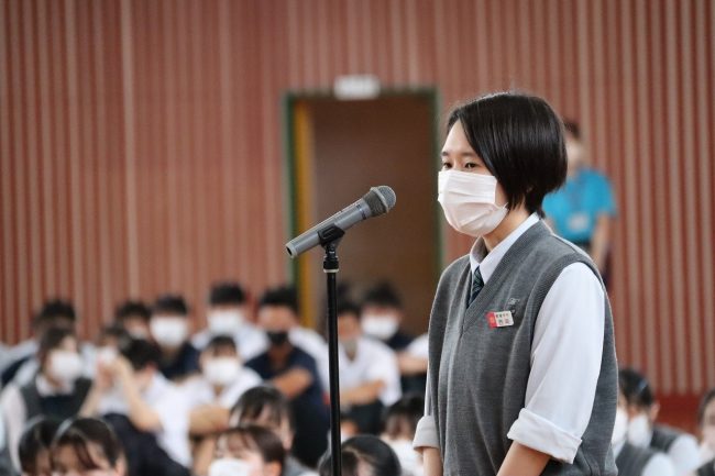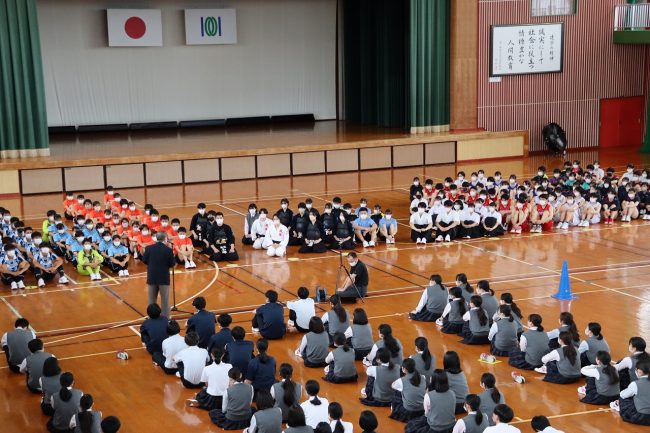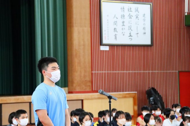 生徒会長の西岡さんは「少ない練習時間で不安なこともあると思います。みんな応援していますので思い切って試合に臨んで下さい。」と話しました。