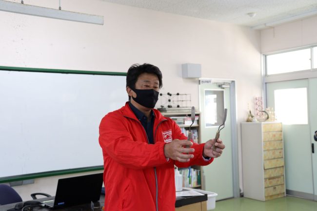 生徒達はスタッフの方から砂の祭典の歴史や砂像の作り方などを聞いて、これからの活動の参考にします。