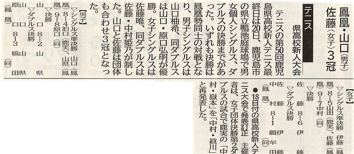 第50回鹿児島県高校新人大会(男女テニス)は、鹿児島市の県立鴨池庭球場で昨日10/20(日)までに個人戦すべての競技を終了しました。
