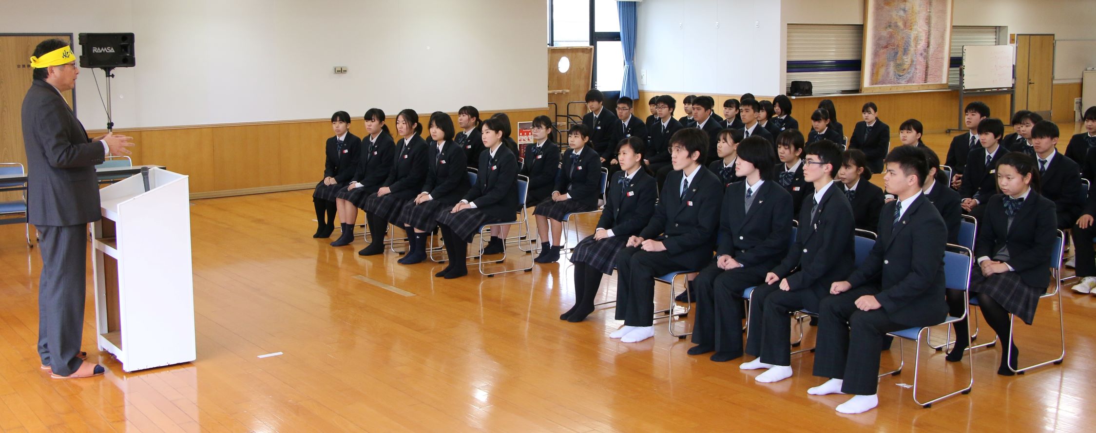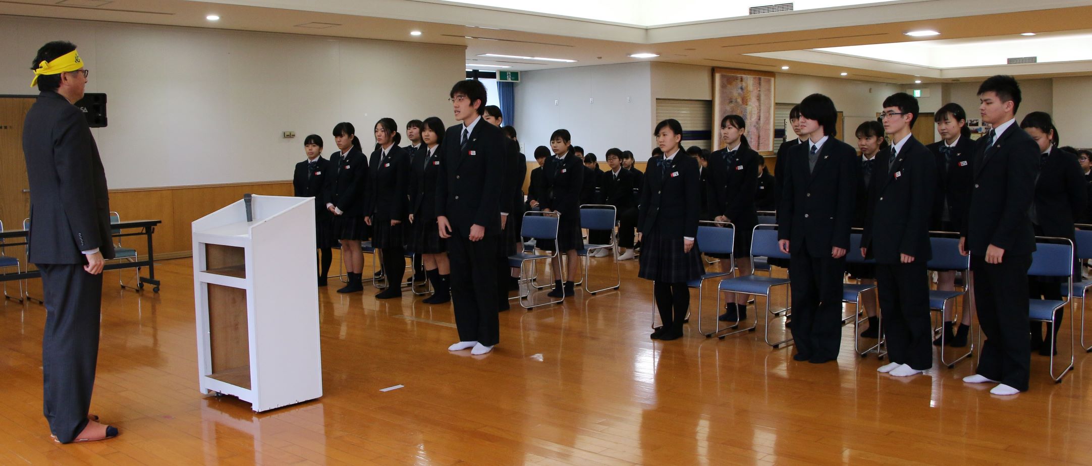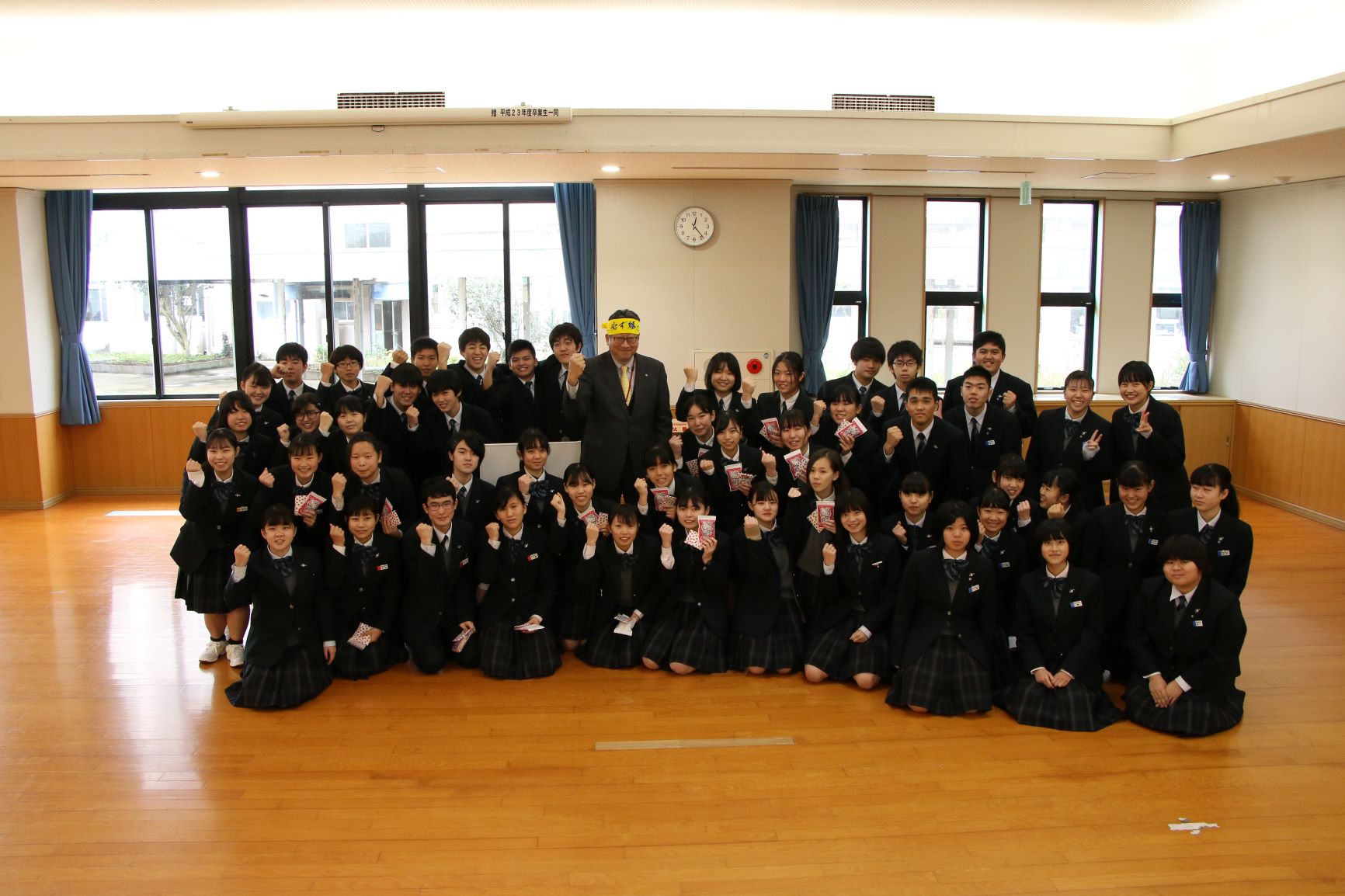 来る1/26(日)、「第32回介護福祉士国家試験」が行われます。本校総合福祉科3年生全員が、鹿児島市内の会場で高校3年間の集大成を果たすべく国家試験に臨みます。本日4限目、武道館1階で「出発式」が行われました。同科1、2年生や校長先生はじめ多くの先生から激励の言葉をいただいた3年生は、これまでになく成長した表情を見せていました。受験生を代表して決意表明した中村 颯くんは、「支えてくださった家族、先生方、友人のためにもあきらめず、全力で受験します。」と真っ直ぐ前を見据えて述べていました。チェスト!!