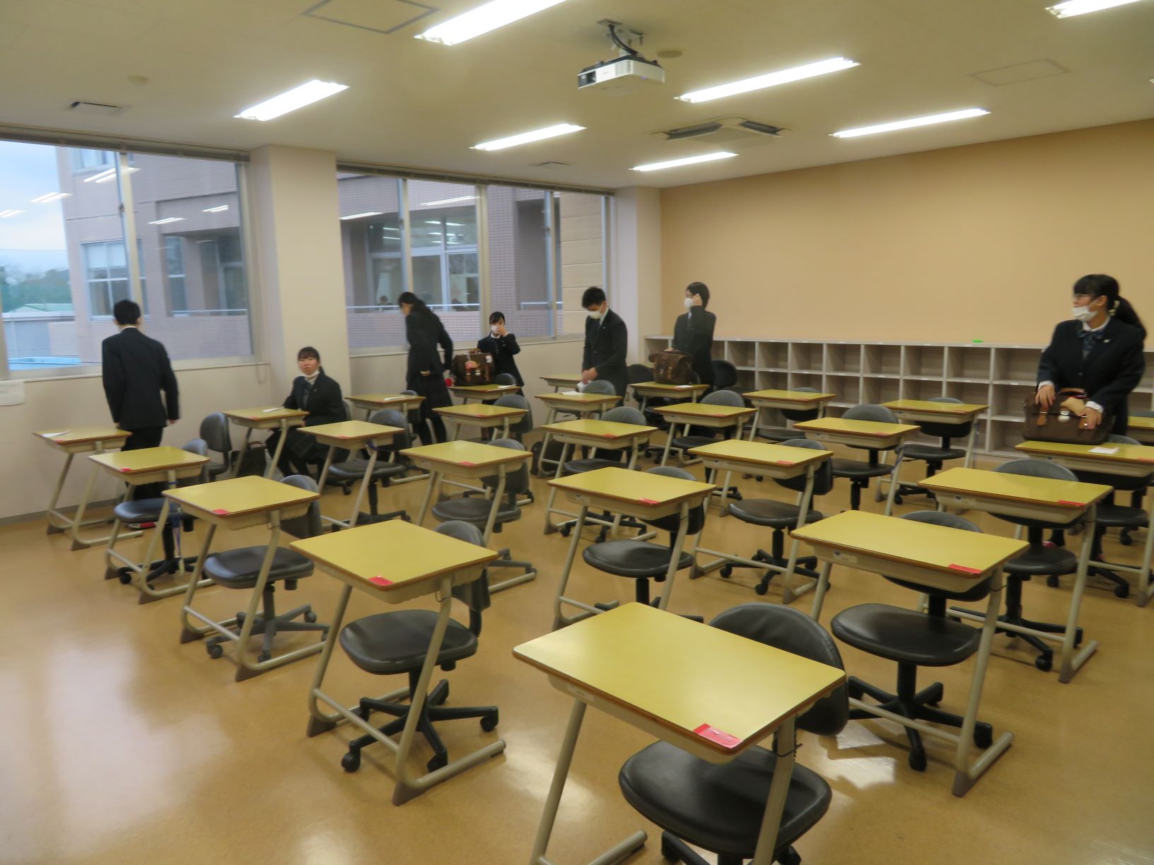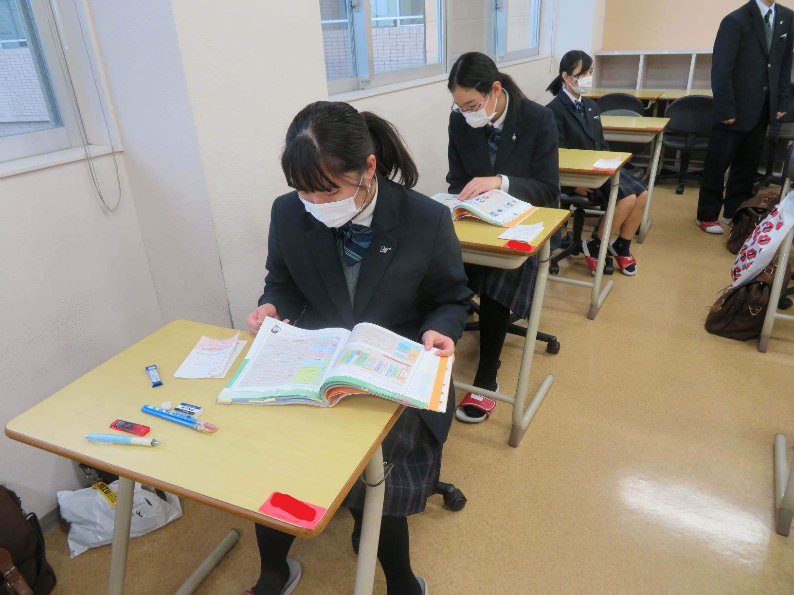 ▲教室は他校生もいましたが、平常心で直前の確認に集中していました。