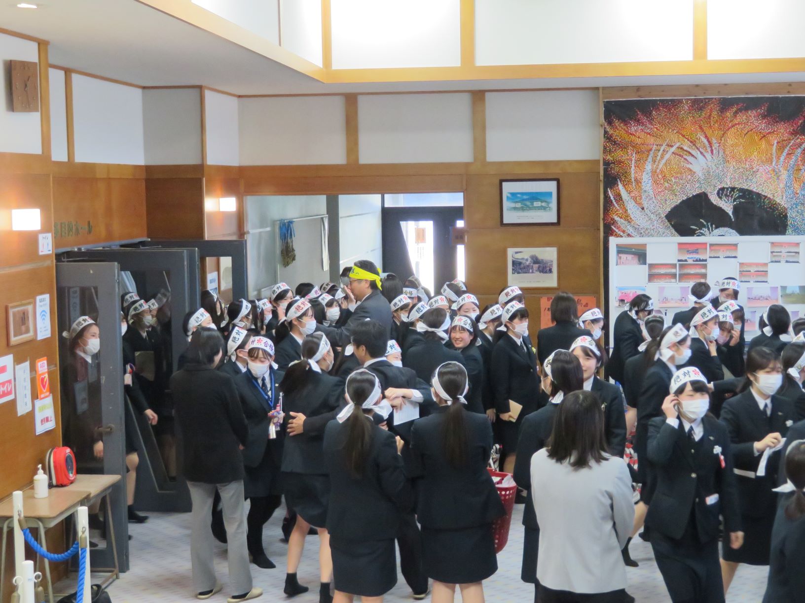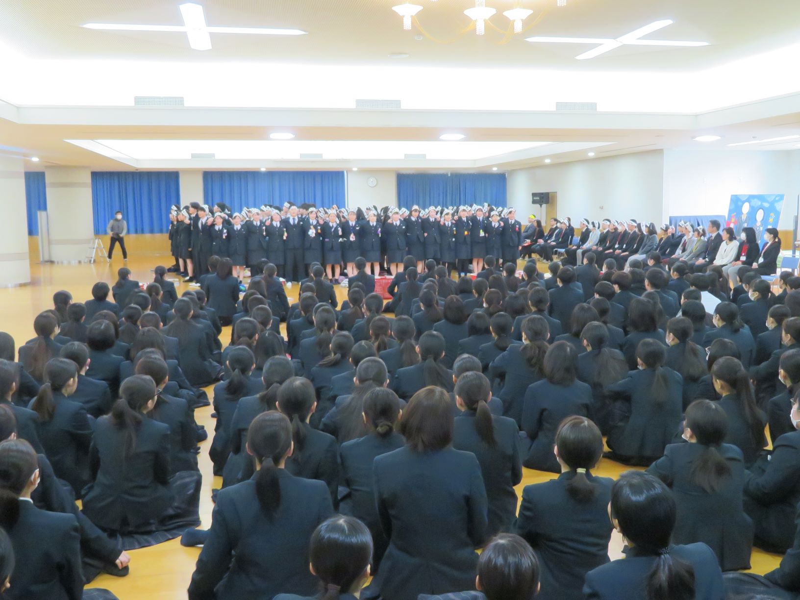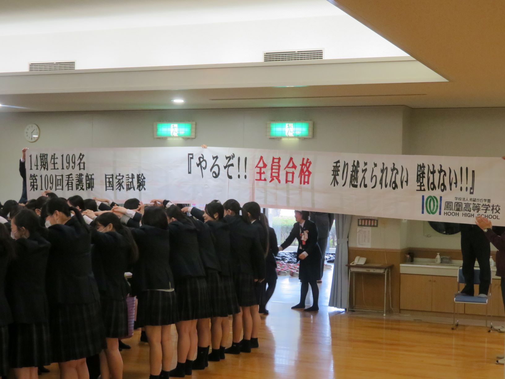 来る2/16(日)、「第109回看護師国家試験」が全国各会場で行われます。本校看護学科専門課程2年生199名、福岡市内の試験会場で5年間の集大成として受験します。本日、12:50から武道館で看護学科全学年が一堂に会し、「出発式」が実施されました。受験生代表で挨拶した湊 あさひさんは「これまで199人で支え合ってきた。『全員合格』という花を咲かせましょう」と声高らかに述べました。