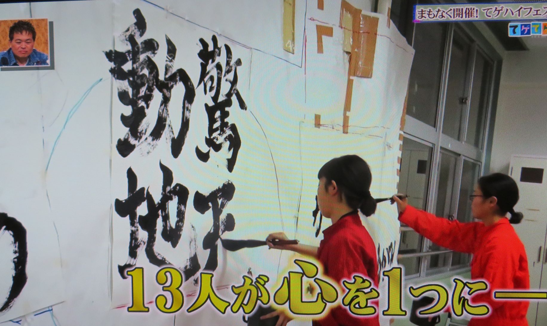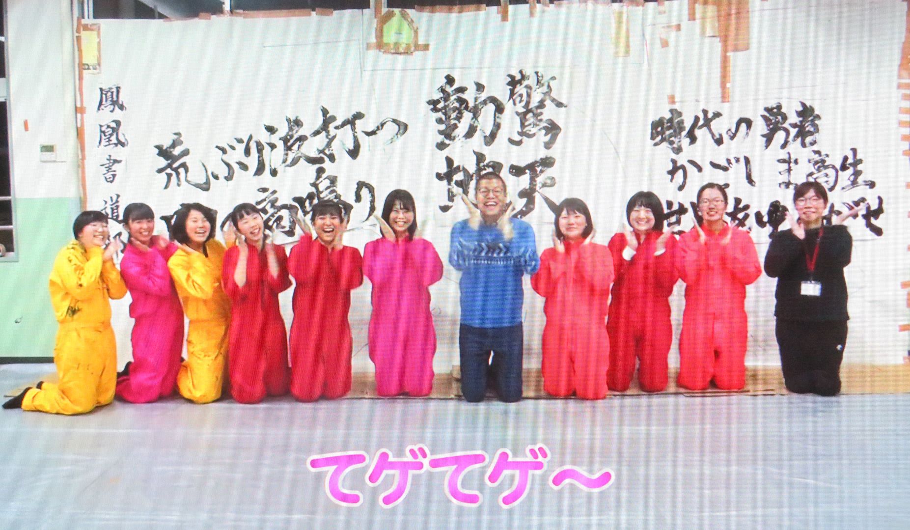 昨日、南日本放送(MBC)の情報番組「てげてげ」(19:00~)に書道部が登場。来る2/22(土)・23(日)開催「てげてげハイスクールフェスティバル2020」の告知も兼ねた情報提供がありました。編集は本校正門からはじまり、校舎や建学の精神なども散りばめていただいていました。2/22(土)鹿児島中央駅アミュ広場で開催されるフェスティバルは、多数の県内出場高校中トップバッターを飾る「書道パフォーマンス」です。ぜひ、お越しください。