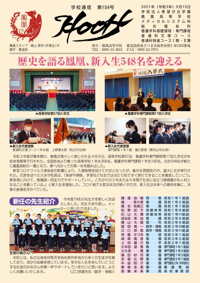 第154号学校通信を発行しました! 2021年5月15日 最終更新日時 : 2024年10月17日 hooh 本日、「第154号学校通信」を発行しました。是非ご覧ください。保護者の方々へはPTA総会の資料とともに郵送いたします。