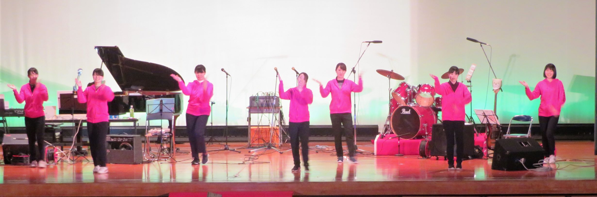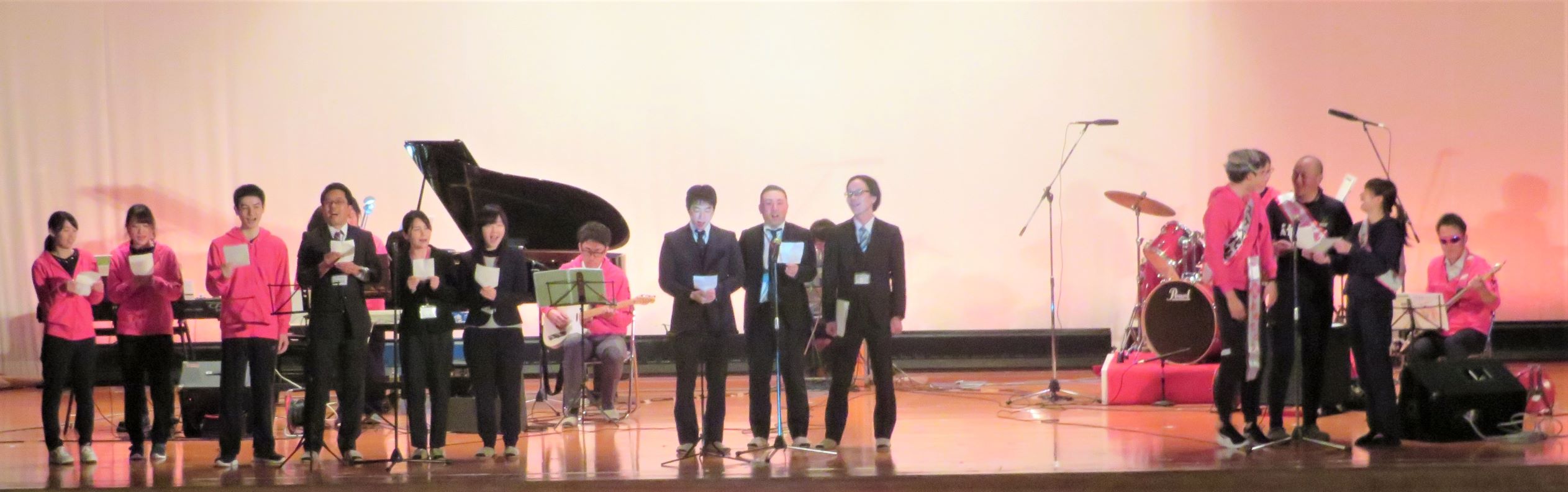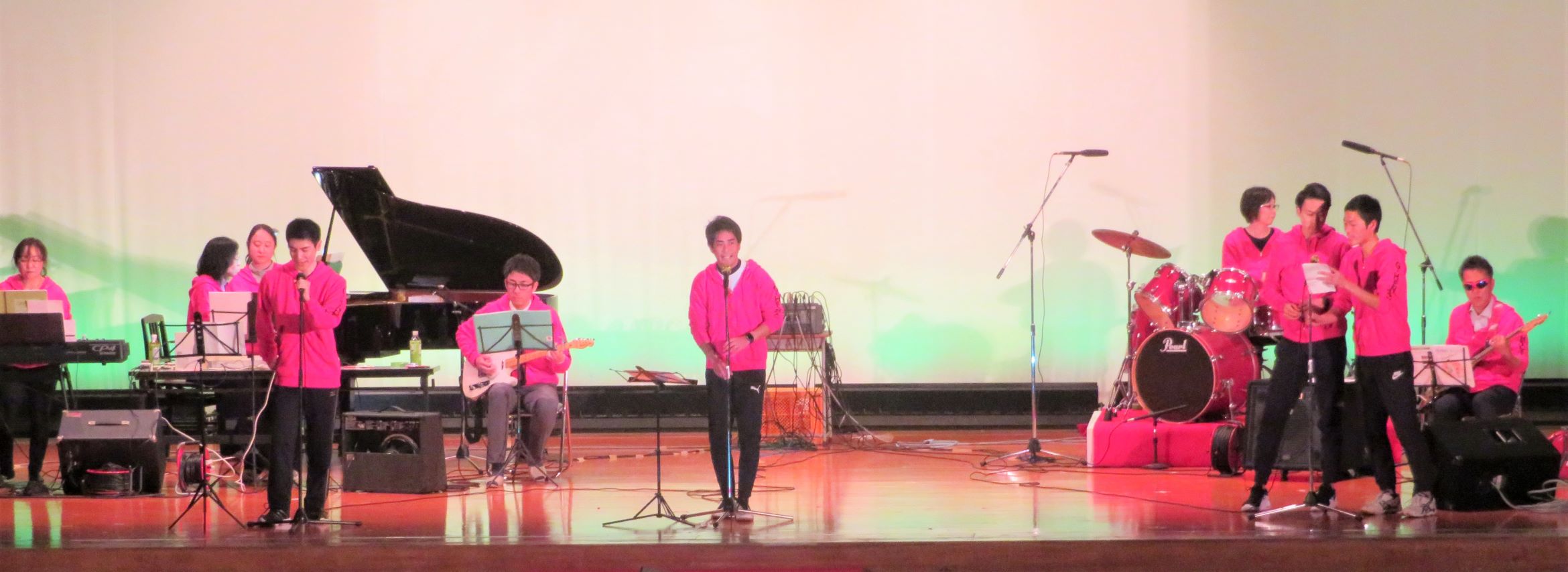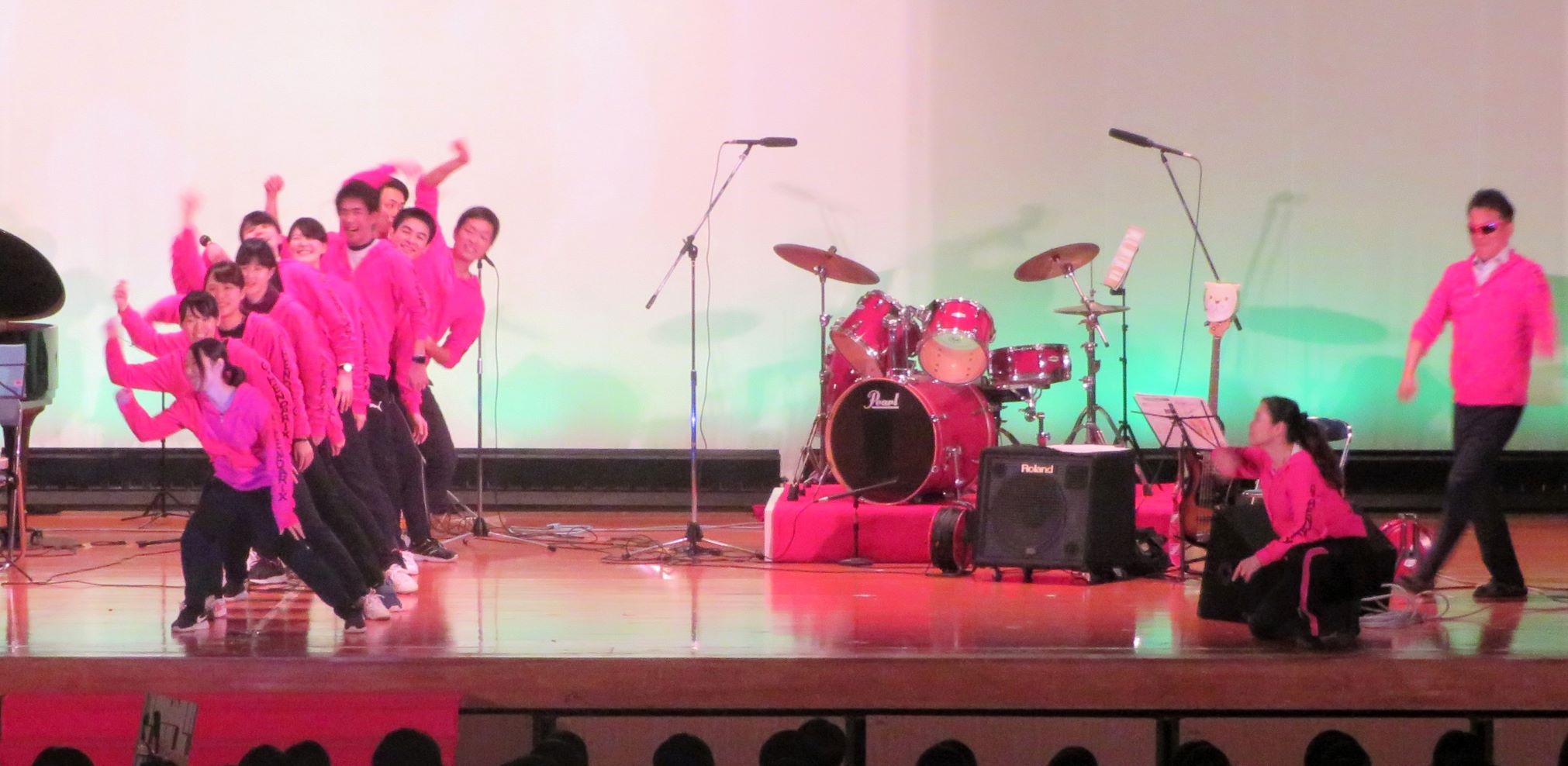 ▼職員バンド「G-Hendarix」と3学年部の先生たち