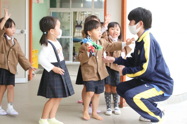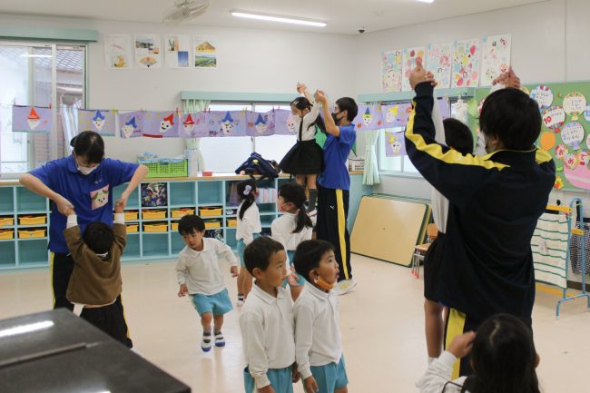 園児たちのいっぱいの笑顔に包まれた総合福祉科の生徒たちでした。