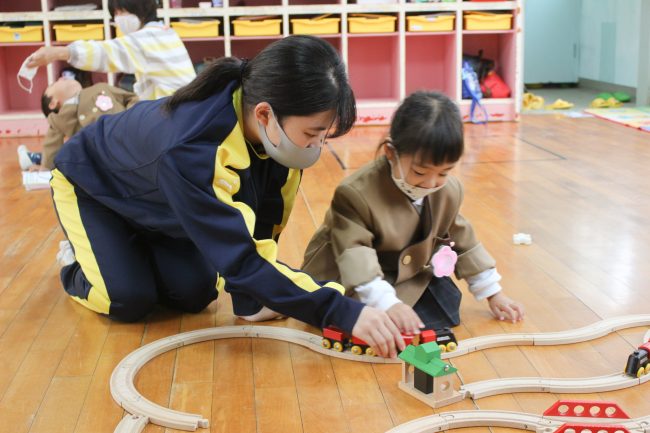 そのため毎年、園児たちと楽しく触れ合う幼稚園実習があります。