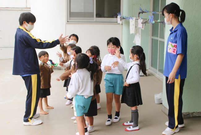 高校生たちは元気いっぱいの子供たちに翻弄され、タジタジに・・・(⌒∇⌒)